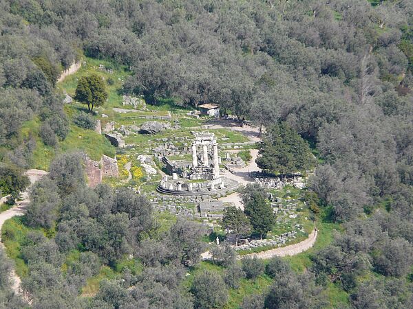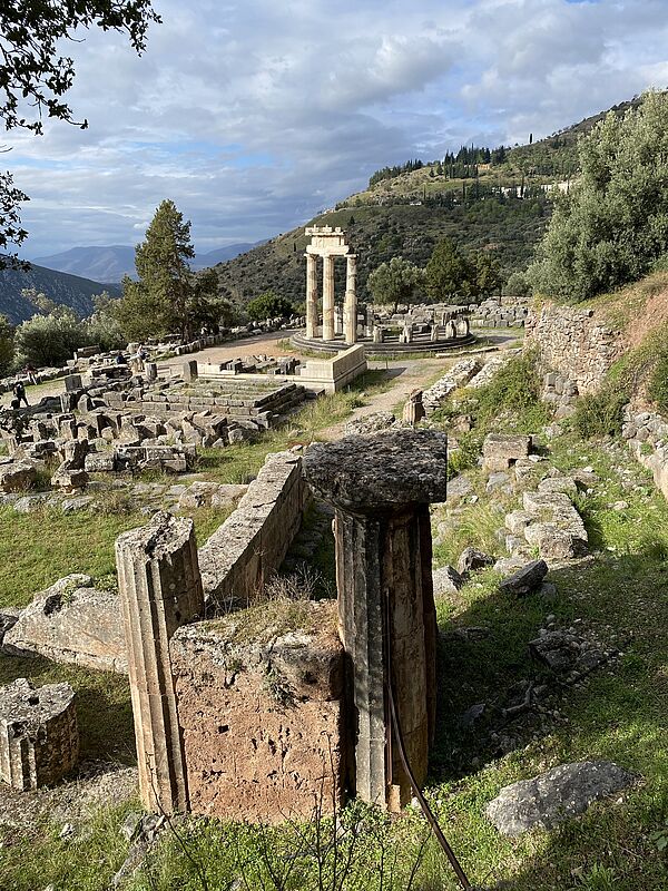 Il s’agit de définir l’ancienneté de l’occupation de la terrasse et de comprendre la fonction des monuments qui y ont été érigés et que l’on désigne traditionnellement comme temples, trésors, tholos, etc. De nouveaux acquis émergent de l’état des lieux que nous avons réalisé en 2017-2021, permettant de restituer l’histoire des lieux de cultes qui se sont succédé sur la terrasse, sur laquelle était honorée Athéna sous l’épiclèse de Pronaia (« devant le temple » sous-entendu « d’Apollon ») aux côtés d’autres déesses ; nous revoyons également la datation des édifices dans la partie occidentale de la terrasse et leurs fonctions : l’édifice monumental en calcaire à l’extrémité occidentale de la terrasse serait un synedrion de l’amphictionie reconstruit à l’instigation de Philippe II de Macédoine et la tholos en marbre qui le jouxte l’équivalent, en plus somptueux, du Philippeion d’Olympie, monument à la gloire de la famille royale macédonienne.